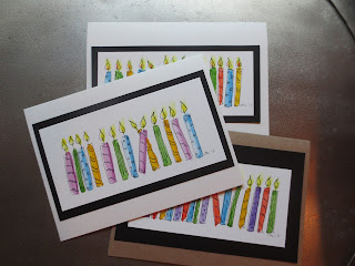 I wanted to become proficient at painting birthday cards with birthday cakes on them... but after only painting a few cards I got bored... so I reverted back to my comfort zone. Birthday candles and Balloons were the designs that flowed freely from my brush.